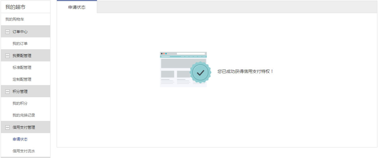 4、由管理员确认合同后,完成信用支付申请,获得信用支付特权。